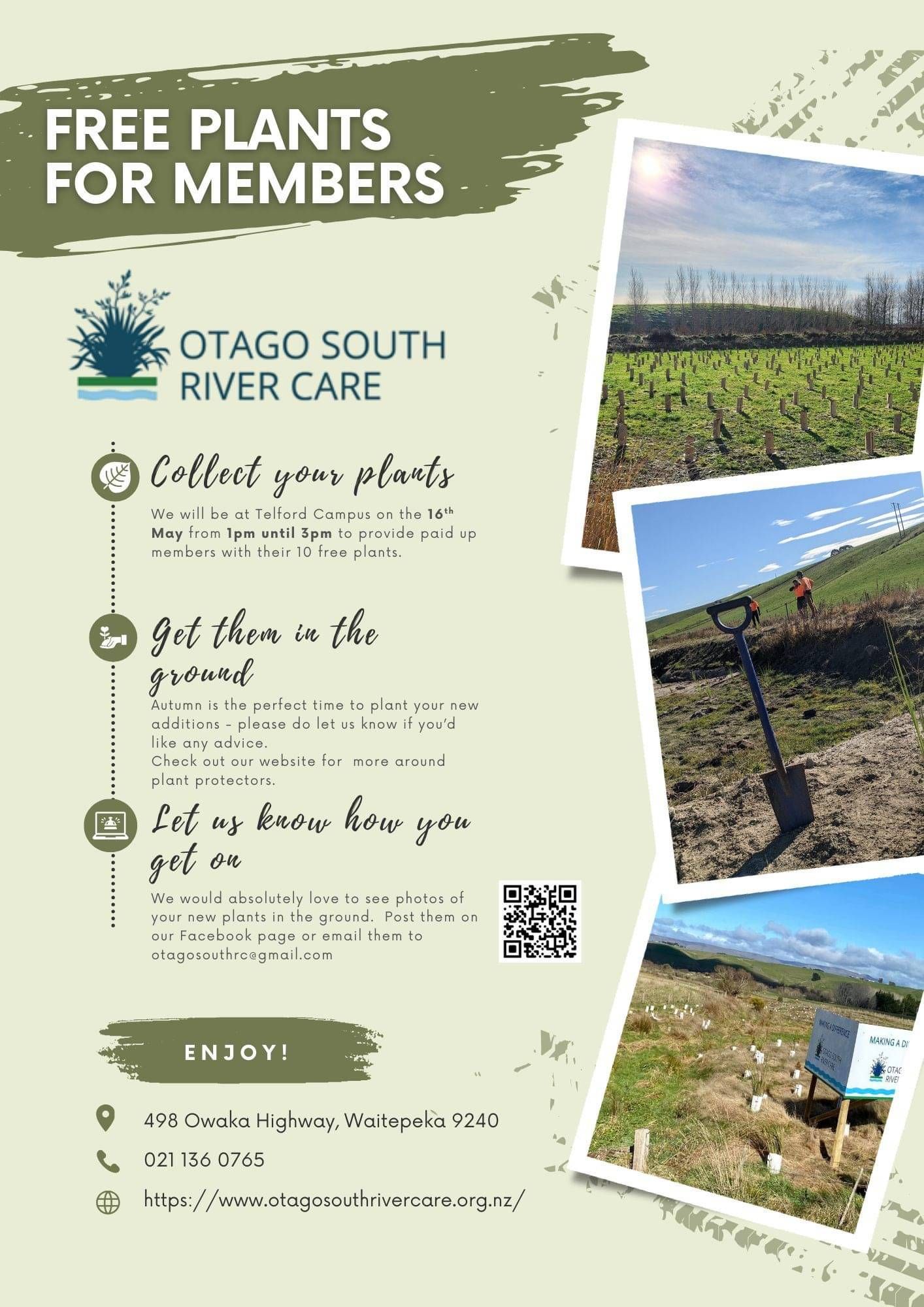 As a valued member of Otago South River Care you're entitled to 10 free native plants.